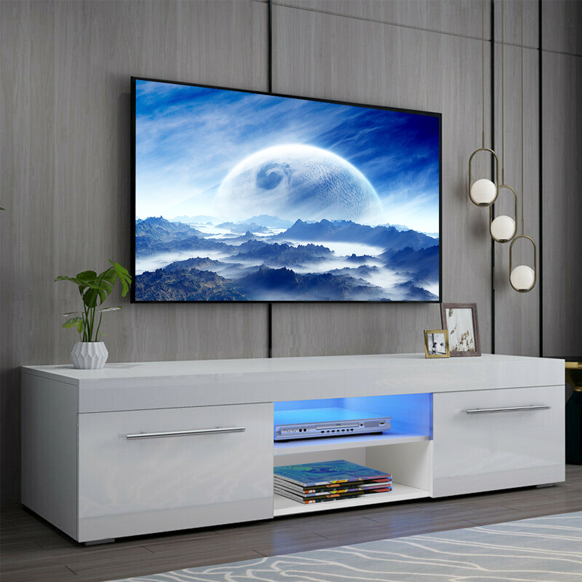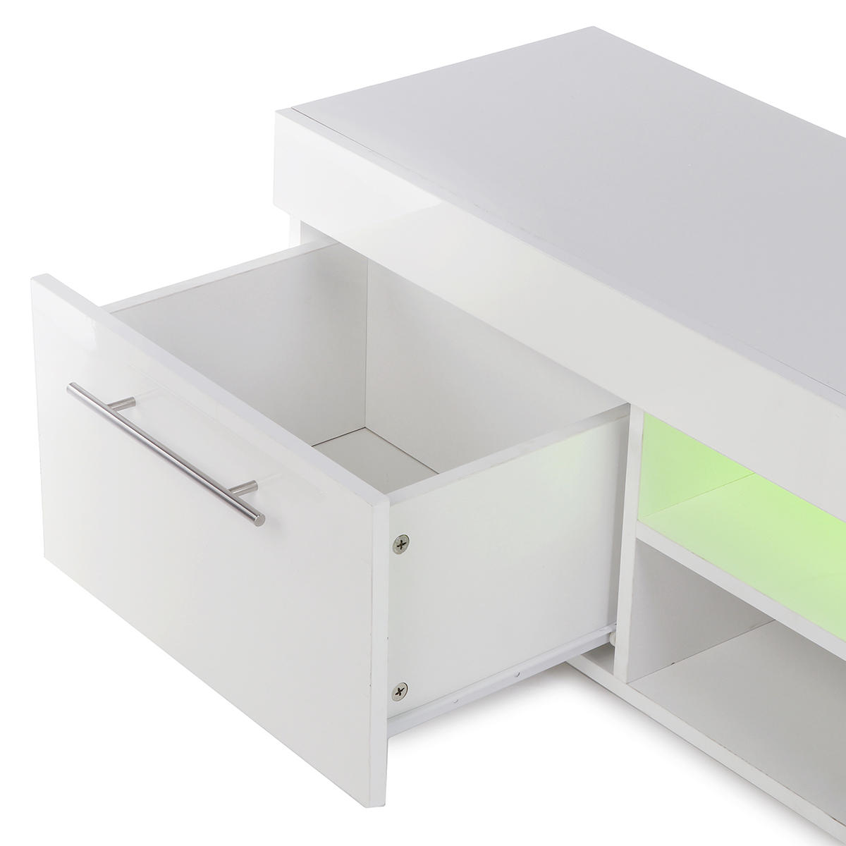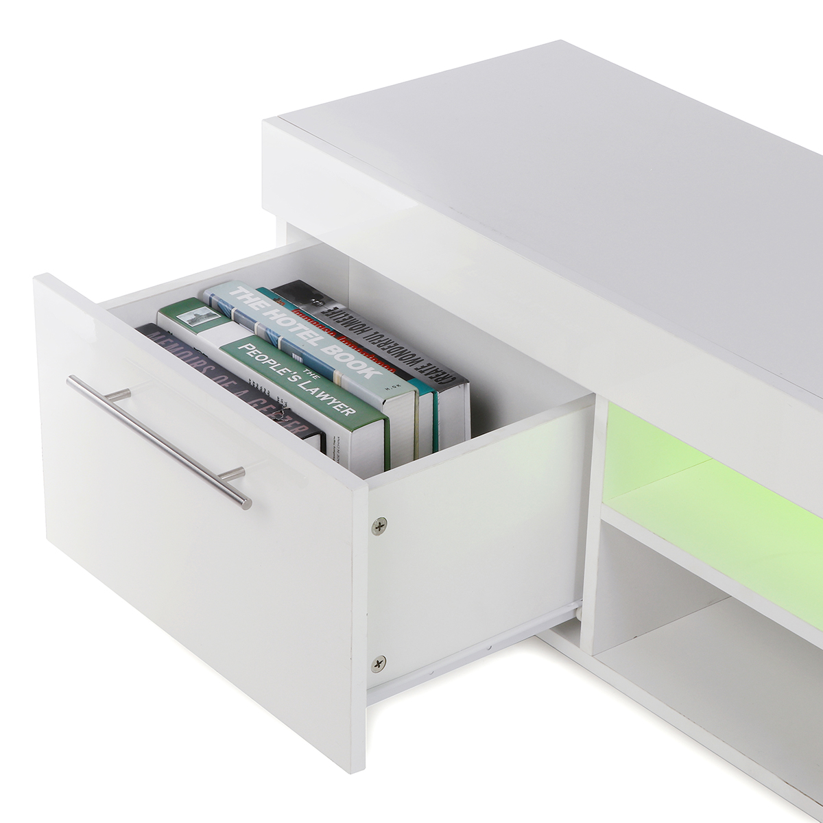 --This TV cabinet is powerful, easy to store, and LED lights make life more colorful.