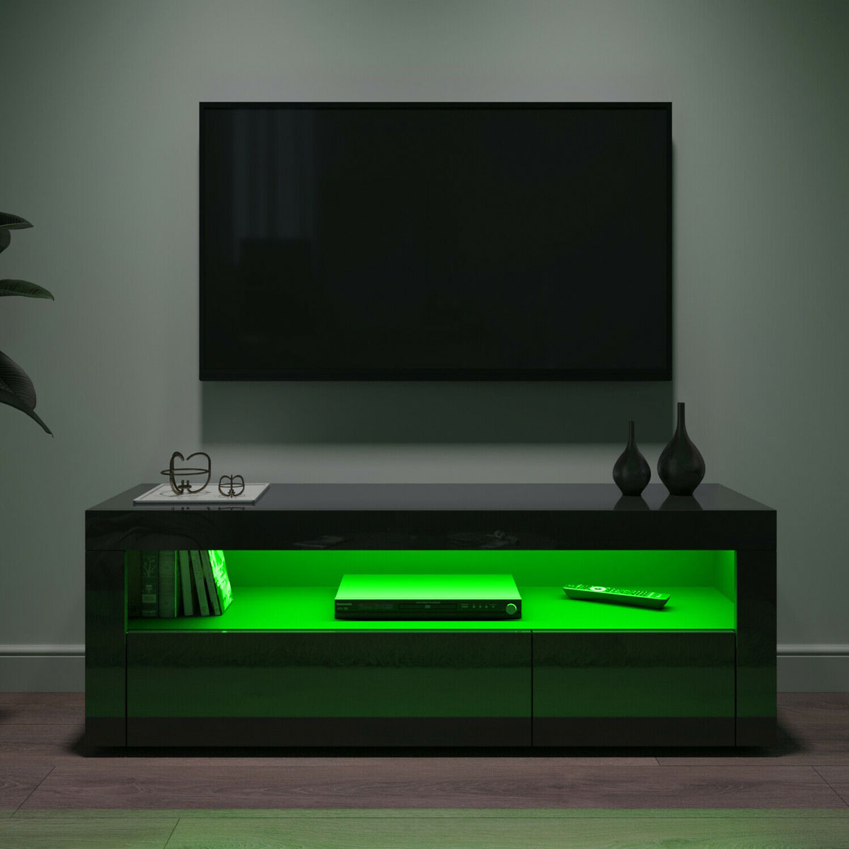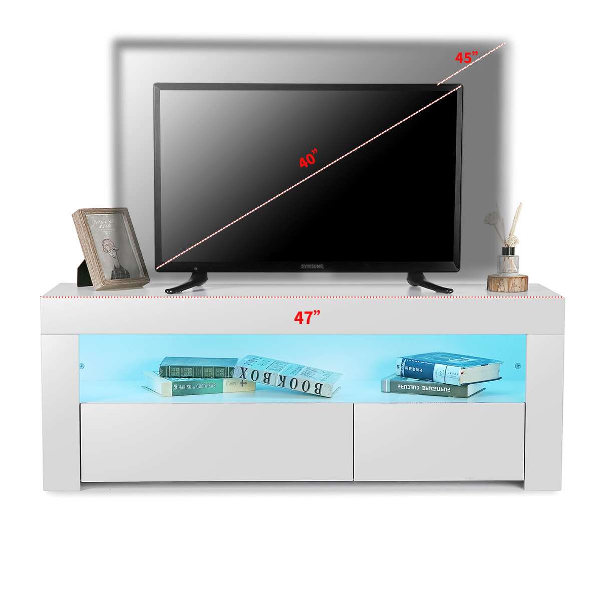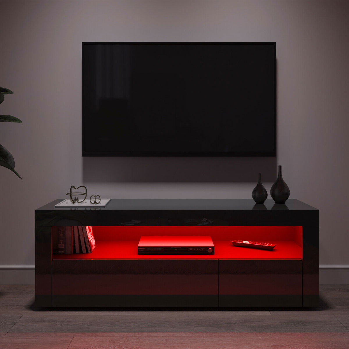 The Television stand is made of high-grade MDF construction with durable laminate, High gloss Eco-friendly UV painted finish, With the smooth surface, easy to maintain and keep clean.