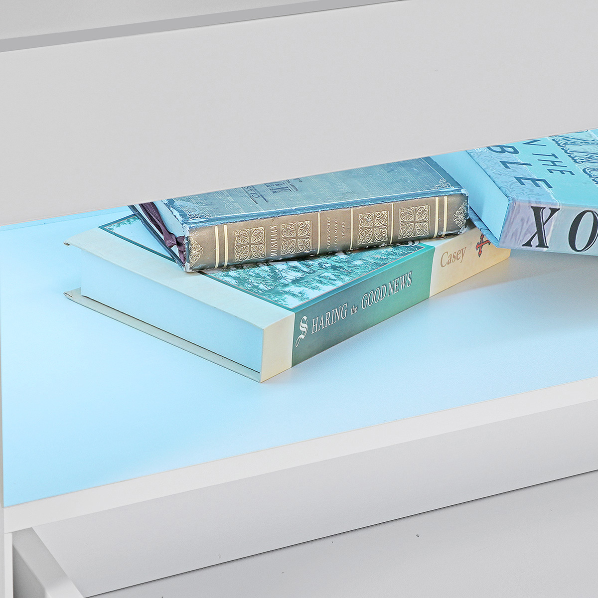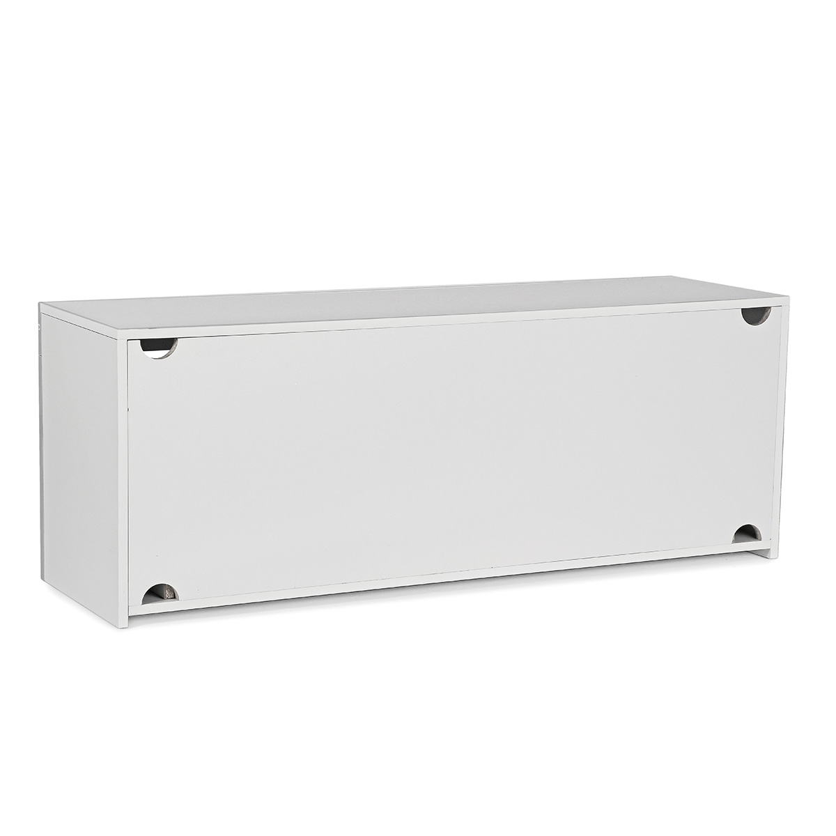 shelf of durable laminate : spaces good for media such as placing TV box, DVD player, speakers, game console, etc, you can easily and neatly organize wires or cords.