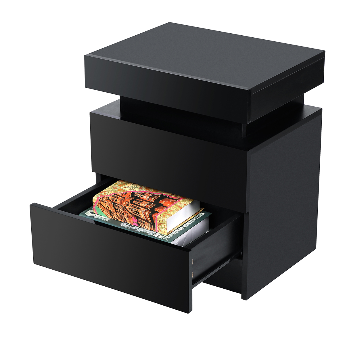 --Designed with modern on the front, painted in a high gloss, which is easy to clean and maintain, the bedside unit is a stylish touch to any bedroom or living room in your house.